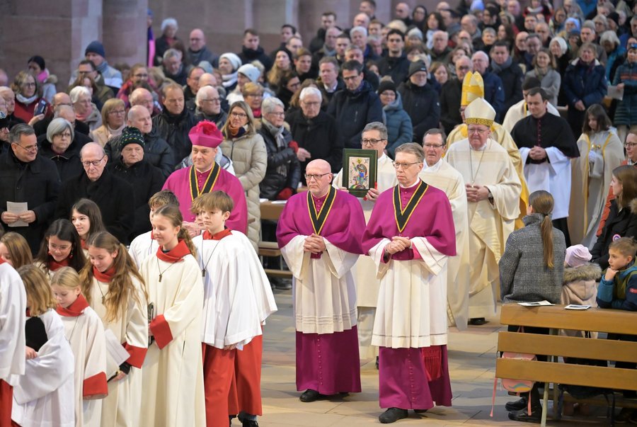 Speyer. Am Weihnachtstag, dem 25. Dezember, feierte Bischof Dr. Karl-Heinz Wiesemann im voll besetzten Speyerer Dom ein Pontifikalamt. Der Mädchenchor, die Domsingknaben und die Dombläser gestalteten den Gottesdienst unter der Leitung von Domkantor Joachim Weller gemeinsam mit Domorganist Markus Eichenlaub musikalisch.